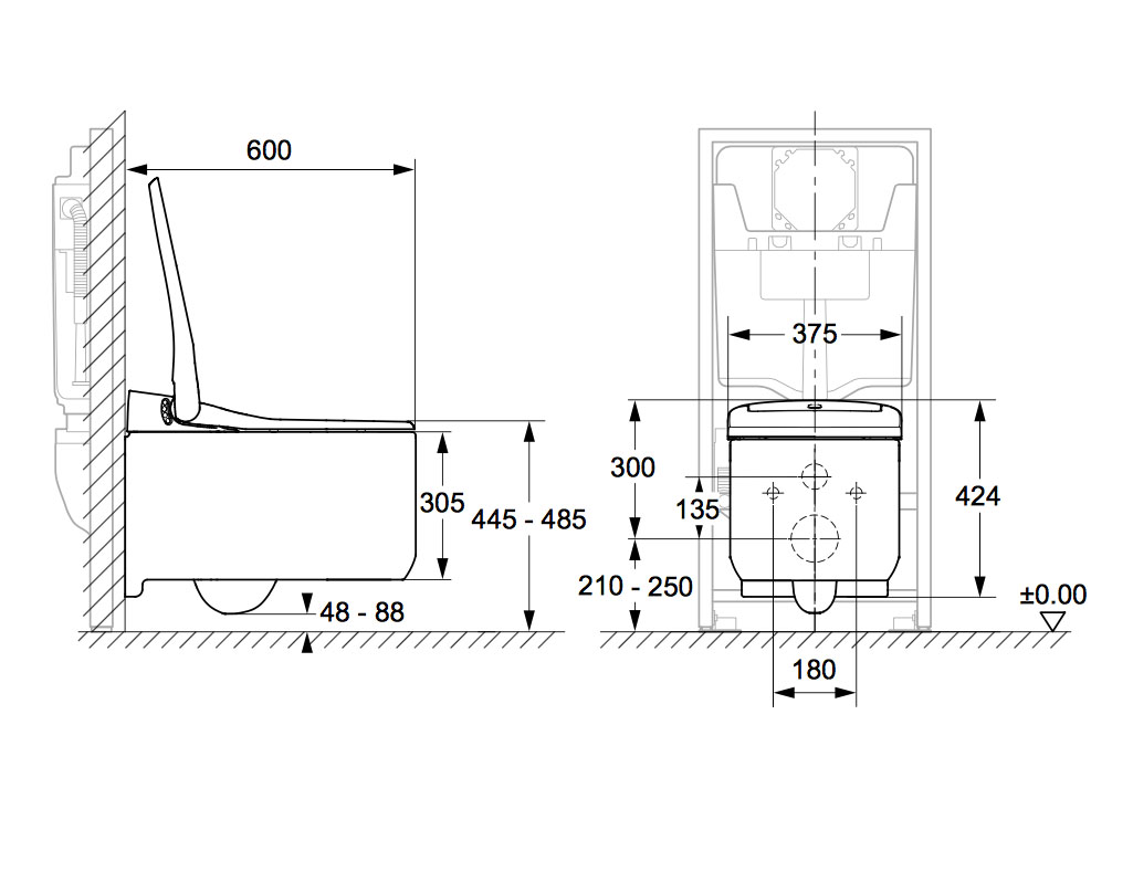 • Netzanschluss: verdeckt hinter der WC-Keramik